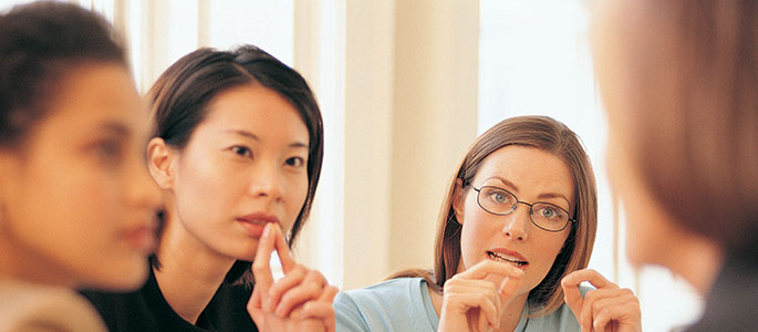 Group of adults in discussion round a table