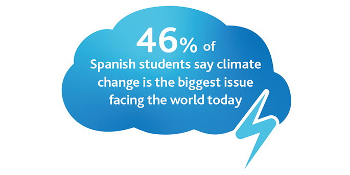 Spanish students believe climate change is the single biggest issue facing the world today, with 46% saying this in the survey. More Spanish students chose climate change as their biggest issue of concern than any other country. Globally, a quarter of all the students who responded to the survey said climate change was their biggest issue of concern. It topped the poll in three quarters of countries surveyed.