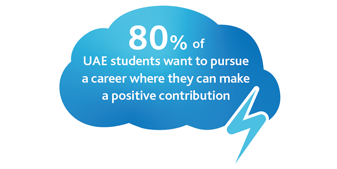 Eighty percent of UAE students surveyed said they would like to pursue a career where they can make a positive contribution to solving global issues. Further, 72% will consider what potential employers’ attitudes are to key global issues when applying for jobs in the future. A majority said they take some form of action to raise awareness of global issues.