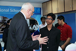 During the school visit, the Vice-Chancellor took part in an interactive session with Cambridge IGCSE and Cambridge International A Level students and spoke about the University of Cambridge, studying in the UK and the move from school to university. He also met the school principal and teachers.
