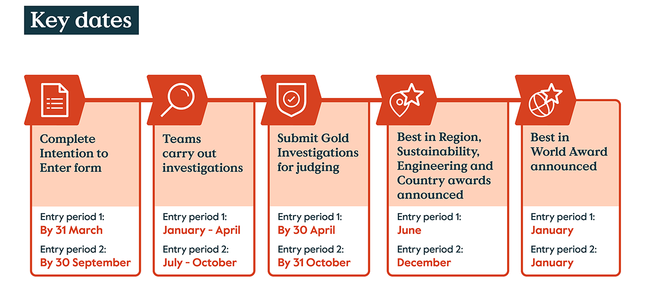 Teachers submit any Gold investigations to Cambridge and our expert panel of judges will consider them for Best in Region, Country, Engineering and Sustainability awards. The winning teams will receive a certificate in recognition of their achievement. Their projects may also be featured on our website and in promotional materials.