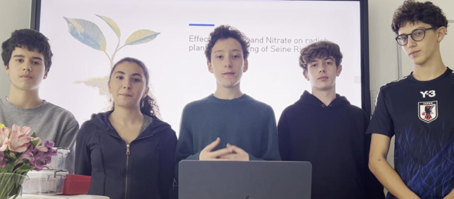 Five students from Collège Sévigné in France won the Best in Region award for their research on the impact of water pollutants on radish plants, including the toxicity of the Seine water on plants.