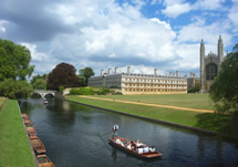 Photo of punting on the river in Cambridge with King's College Chapel in the background.